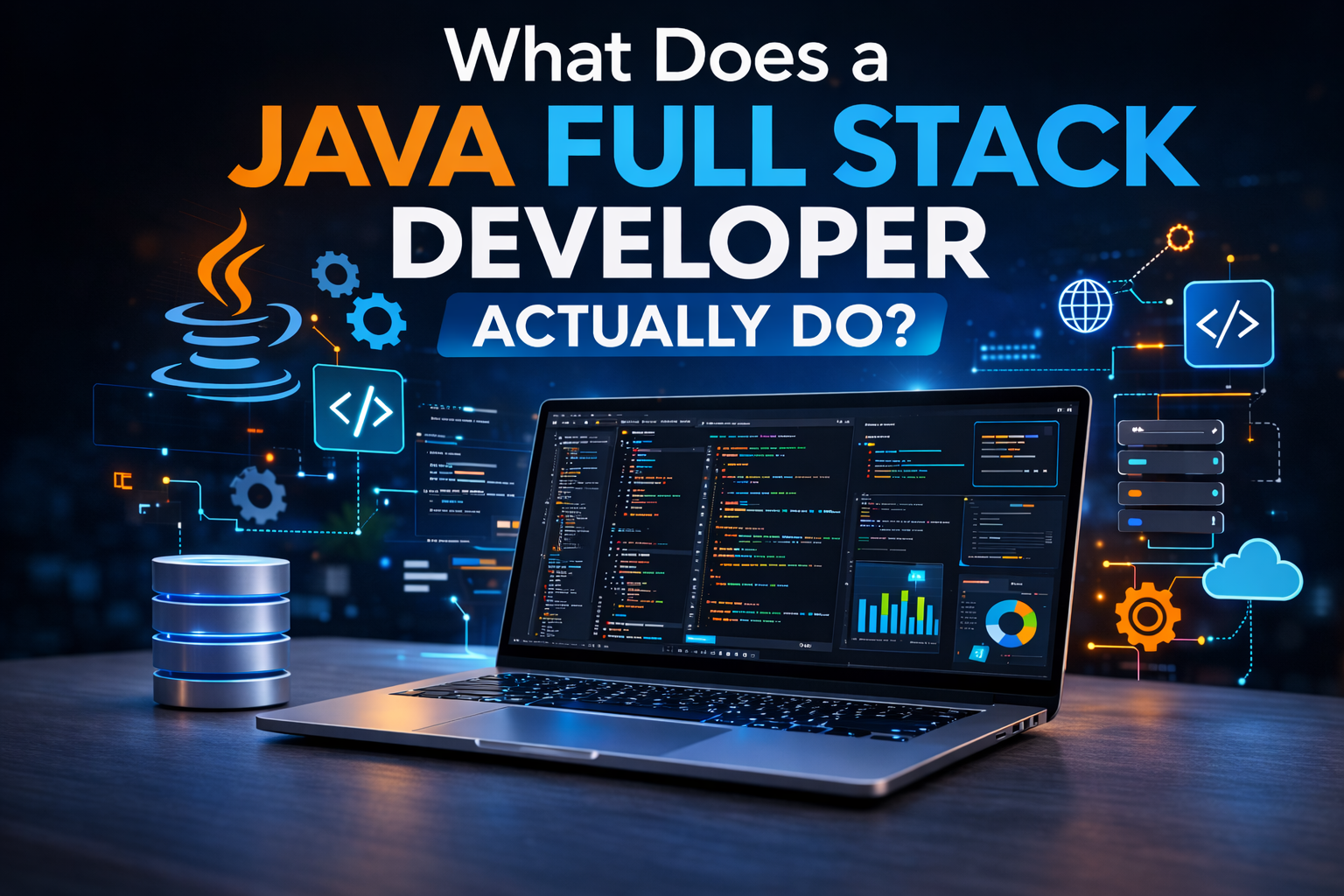 A Java Full Stack Developer is a software professional skilled in Java technologies and capable of managing the full spectrum of application development—from designing the user interface to implementing backend logic and managing databases. They bridge the gap between the design team, development team, and business requirements, ensuring smooth and efficient applications.
